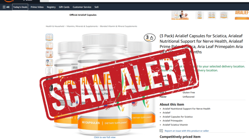 Well, a very important warning that I think is important to mention here is the number of people who are being scammed when ordering the supplement because they are not using the official website to purchase it. Unfortunately, many people can become victims of fraud by purchasing the Arialief supplement from unauthorized sellers looking for cheaper prices. We advise against purchasing Arialief from platforms like eBay, Amazon, or Walmart, as these items are counterfeit, contain completely different ingredients, and can be dangerous to your health. If you choose to purchase the Arialief supplement, we strongly recommend that you do so only through the official website to ensure the product’s authenticity and safety.